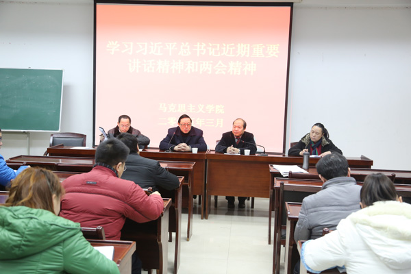 在学习会上,何书记组织大家学习了三大内容:一是学习了习近平总书记“四个全面”、人民日报给“四个全面”权威定义、“四个全面”的哲学;二是学习了关于进一步加强和改进高校宣传思想工作的意见;三是学习了全国“两会”精神。