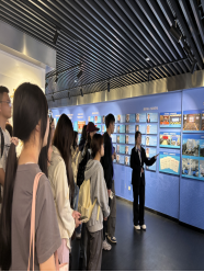 在带队老师和校史馆讲解员张静涵的组织带领下,同学们先是通过红湘、雨母两校区三维沙盘模型,系统了了解学校功能布局与发展规划。随后,师生们沿着校史脉络展开深度研学:从衡阳矿冶工程公司的肇基之始,到世纪之交中南工公司与衡阳医公司合并组建的跨越发展;从核科学与技术、基础医学等优势学科的建设成果,到历代南华人矢志报国的奋斗群像。通过核反应堆模型解析、多媒体互动体验等沉浸式教学,同学们切身感受到了“勤勉务实、甘于奉献”的南华精神。